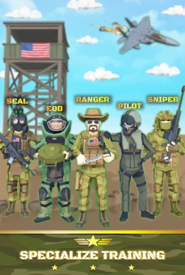 Navigeerige läbi keeruliste ülesannete, suheldes isegi nõudlike drillseersantidega, kes on pühendunud teie vägede piiridele viimisele. Tõestage oma võimet muuta tavalised värbamised erakordseteks merejalaväelasteks. Juhtige kuni kuut ainulaadset baasi: alates Forrest Fury laagrist ja spetsialiseeritud Merejalaväe Korpusest kuni Sandstorm Outposti kõrbekeskuse, salajase Spioonitsitadelli ja kõrgtehnoloogilise Astrali Kindluseni, kus on juurdepääs tipptasemel relvastusele. "Idle Army Base: Military Tycoon" pakub enneolematut jõudeoleku magnaadimängu kogemust, pannes proovile teie strateegilise taiplikkuse ja juhtimisoskused. Olge valmis riiki suursugususele juhtima ja oma pärandit looma.