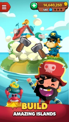 Sinu teekond rikkaimaks piraadikuningaks algab õnnerattast! Keeruta ja võida müntide ja hinnaliste esemete aardeid, et uuendada oma saart ning muuta see tõeliseks kindluseks. Sukeldu põnevatesse piraatide missioonidesse, kus aardekaardid juhatavad sind müütiliste varanduste ja haruldaste esemeteni. Kogu ainulaadseid piraatide kaarte, et täita album ja avada veelgi väärtuslikumad hüved. Iga spin, iga rüüsteretk ja iga ehitusprojekt viib sind sammu lähemale mere valitsejaks saamisele.