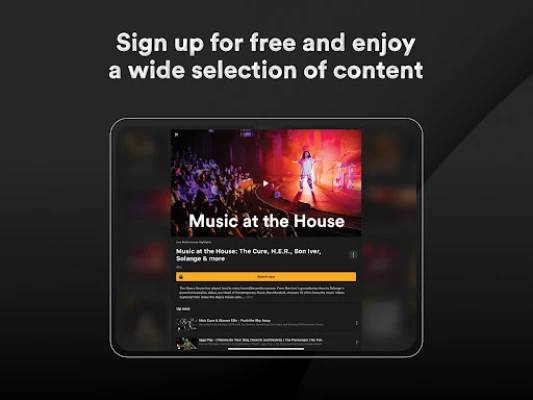 Lihtsa ja tasuta registreerimisega avaneb teile ukse täielikule elamuste spektrile. "Stream" pakub pidevalt uusi avastusi, lisades igal kuul värsket sisu, mis tagab alati midagi uut ja põnevat. Nautige paindlikkust valides laia valiku tasuta materjali ja eksklusiivsete tasuliste etenduste vahel. Lisaks lavalistele meistriteostele saate piiluda kulisside taha unikaalsetes filmides, mis pakuvad sügavamat arusaama loomeprotsessist. Olgu selleks teie elutoa muutmine esinduslikuks teatrisaaliks või etenduste jälgimine liikvel olles, "Stream" kohandub teie elustiiliga, pakkudes juurdepääsu tipptasemel etenduskunstile just siis, kui te seda soovite. Samuti on teil võimalus vaadata otseülekandeid piletiga üritustest, tuues erakordsed elamused otse teie käeulatusse.
