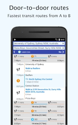 Kujutage ette, et teate alati, millal teie järgmine ühendus väljub, isegi kui levi puudub. Rakenduse võrguühenduseta sõiduplaanid tagavad, et teil on alati ajakohane teave käepärast, olgu te siis metroos maa all või piirkonnas, kus internet on kättesaamatu. Reaalajas väljumiste ja viivituste teave hoiab teid kursis ootamatute muudatustega, samas kui intelligentne ukse-ukseni teekonnaplaneerija aitab teil kiirelt ja täpselt navigeerida läbi Sydney transpordivõrgu. Sisestage lihtsalt oma algus- ja lõpp-punkt ning saate optimaalseimad marsruudid, arvestades kõiki transpordiliike.