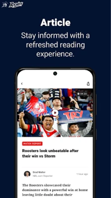 Sukelduge sügavale mängupäeva elamusse põhjaliku ja ajakohase teabega. Official Sydney Roosters app pakub enneolematut katvust alates põhjalikest meeskonna koosseisudest ja mängueelsetest ülevaadetest kuni reaalajas toimuvate sündmuste ja detailsete mängujärgsete analüüsideni. See on teie ühtne allikas, et mõista iga mängu nüanssi. Lisaks tekstipõhisele sisule nautige rikkalikku videovalikut, mis sisaldab põnevaid mängude tipphetki ja mängijate parimaid sooritusi, tuues teieni kogu pinge ja võidurõõmu uues ja kaasahaaravas formaadis.