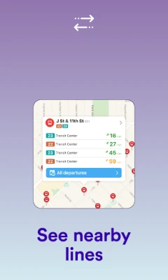 Planeerimine pole kunagi olnud lihtsam. Sirvi põhjalikke seitsmepäevaseid sõiduplaane, et korraldada oma nädalat ja olla alati sammu võrra ees. Salvesta oma lemmikpeatused ja -jaamad kiireks juurdepääsuks, muutes igapäevase rutiini sujuvamaks. Avasta kõik läheduses asuvad marsruudid ja nende kulgemised, et leida parimad ühendused ja avastada uusi teekondi. See disain on loodud lihtsust silmas pidades, pakkudes sulle vaid olulist infot, ilma segadusseajavate detailideta. Sujuv ja stressivaba ühistranspordikogemus on nüüd käeulatuses.